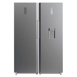 ساید بای سایدها یخچال فریزرهای نهچندان عمیقی هستند که در آنها یخچال و فریزر بهصورت عمودی در کنار هم قرار میگیرند. محدودیت عمق در این یخچالها محدودیتهای مختلفی برای قرار دادن مواد غذایی ایجاد میکنند. این یخچال فریزرها پرمصرفتر از سایر سبکهای یخچال فریزر هستند اما مزایایی مانند فضای کوچک برای چرخش درب دارند. این یخچال فریزرها برای خانههایی که جمعیت به نسبت زیادی دارند اما فضای آشپزخانهی محدودی دارند میتوانند گزینهی مناسبی باشند. در بیشتر مدلهای این یخچال فریزر دستگاه یخساز خارجی و خنککنندهی آب هم وجود دارد.